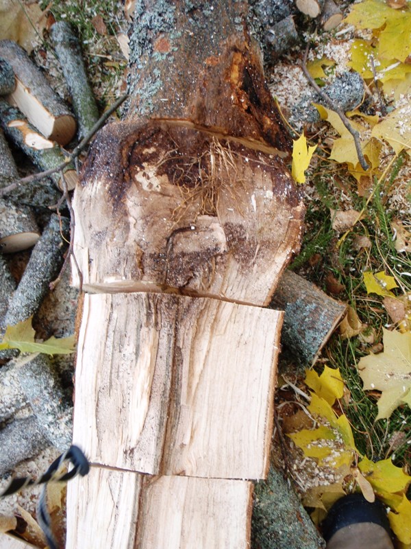 Så var lønna felt. Det gjekk lettare enn rekna med sidan ei telefonlinje var teken bort då ho skulle fellast. Fellinga vart gjort slik; Erlend gjekk opp i den friske toppen og pendla derifrå bort til den skadde delen. Der fellte han ned dei to gjenverande toppane, noko som var greitt no når telefonlinja var borte. Til slutt plukka han ned den friske toppen i deler, litt trongare der med ei lågspentlinje og eit hus i nærleiken men alt gjekk fint så no kan huseigaren sova trygt att.